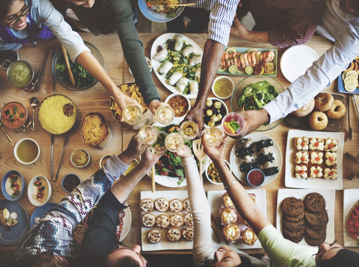 Don’t be shy about sharing your food either. Passing plates around the table is a great way to break the ice and start conversations.